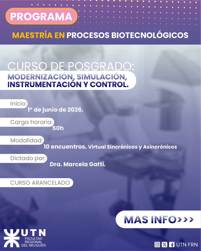 El curso forma parte del programa de la Maestría en Procesos Biotecnológicos.